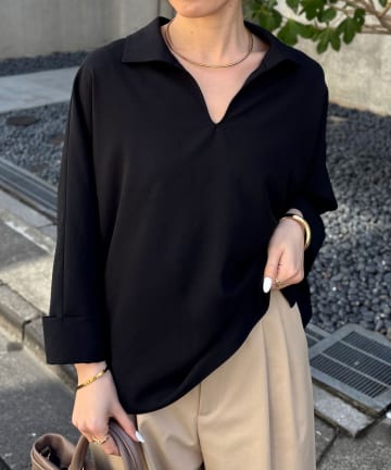 【前後2WAY/冷房対策◎】スキッパーシアーブラウス