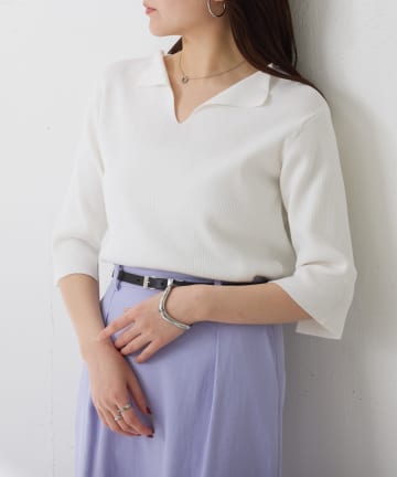《再入荷リクエスト多数につき再販決定!》デザインネックリブニット