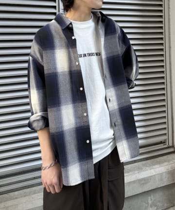 リネンライクオンブレチェック長袖シャツ