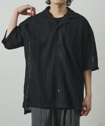 【リバイバル】ニット透かし編み半袖シャツ