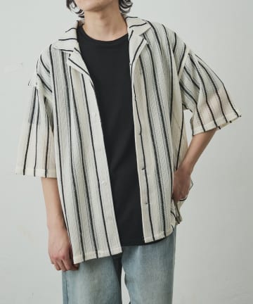 ストライプジャガード半袖シャツ