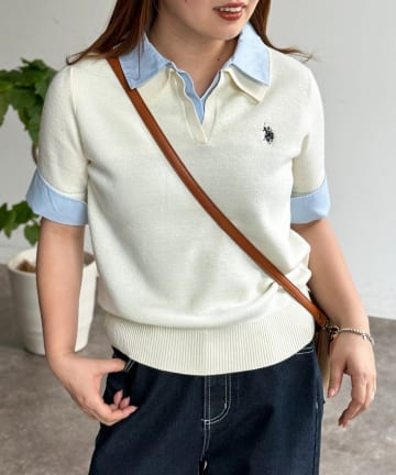 【U.S. POLO ASSN.】フェイクレイヤード半袖ポロ