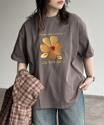 フロントフラワー刺繍T