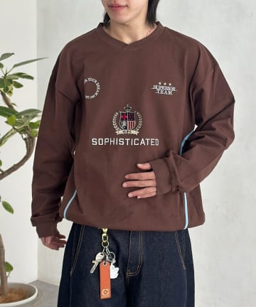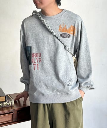 古着ライク胸刺繍ヘンリースウェット