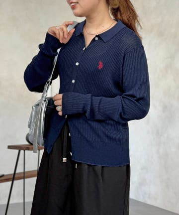 【U.S. POLO ASSN.】襟付きニットボタンカーディガン