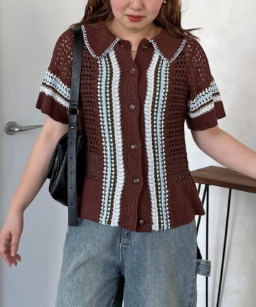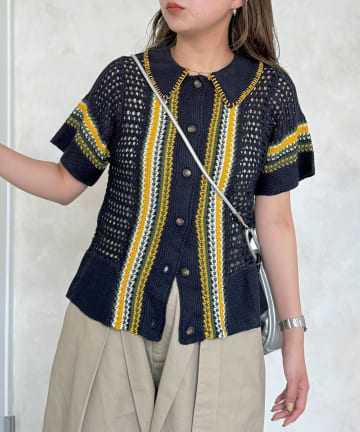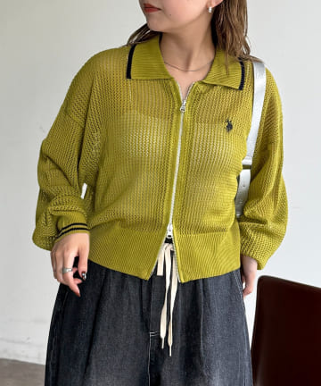 【U.S. POLO ASSN.】襟付きメッシュカーディガン