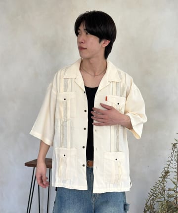 花刺繍キューバシャツ