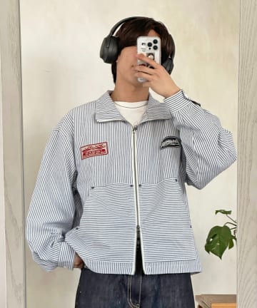 ストライプワークシャツジャケット