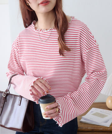 【29色展開/インナー使いにも◎】ワッフルボーダー長袖Tシャツ《WEB限定》