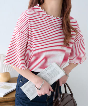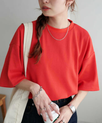 【WEB限定】シアーワッフルクルーネックコンパクトTシャツ