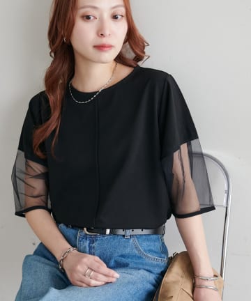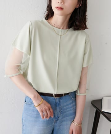 【WEB限定】袖シアーカットカルゼTシャツ