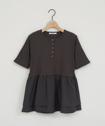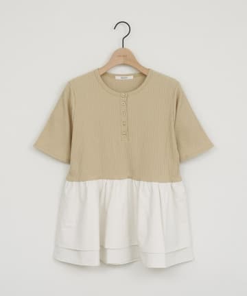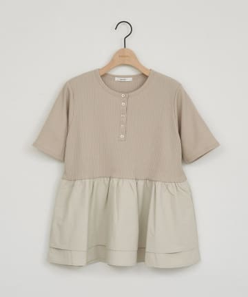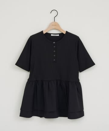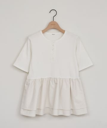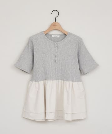 ヘンリーネック切り替えペプラムプルオーバー