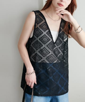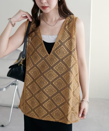 【WEB限定】ダイヤ柄レースベスト