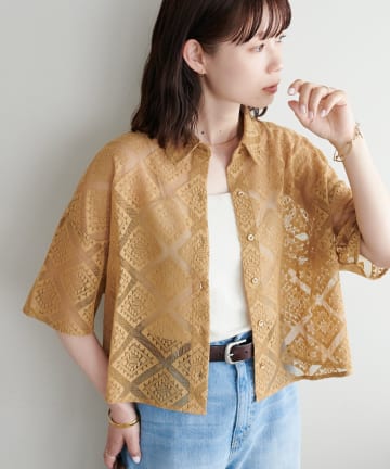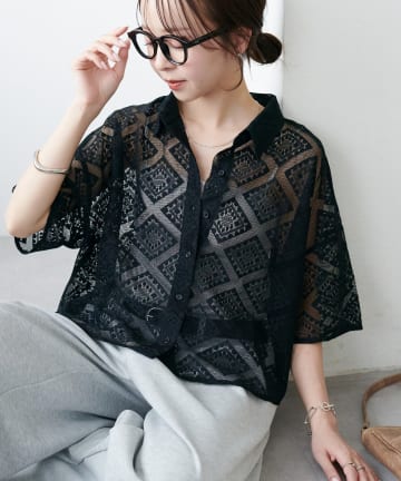 【WEB限定】ダイヤ柄レースシャツ