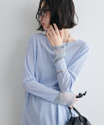 【新色追加!/全16色展開】シアー袖切替プルオーバー≪WEB限定カラーあり≫