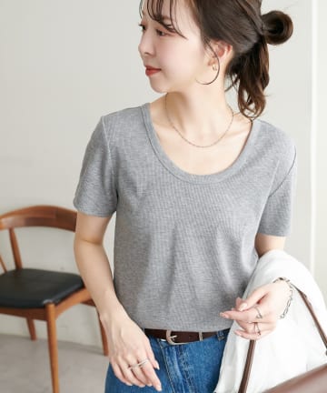 【WEB限定】ラメリブコンパクトUネックTシャツ