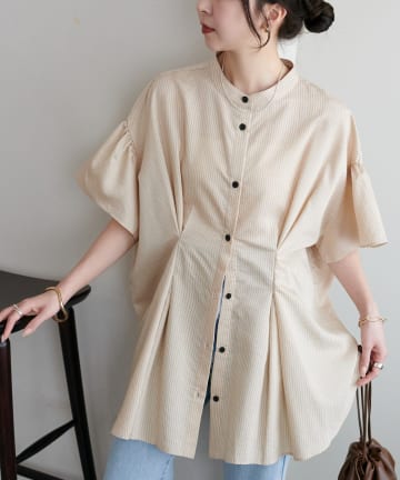 【WEB限定】シアーストライプ袖ボリュームシャツ