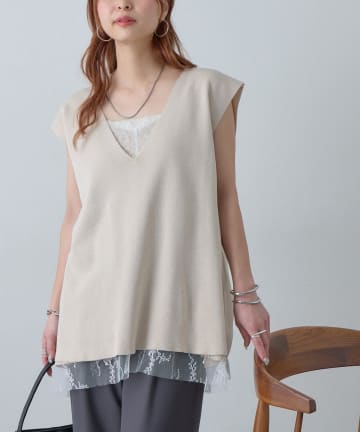 【WEB限定】袖配色スカラップポコポコフレンチニット