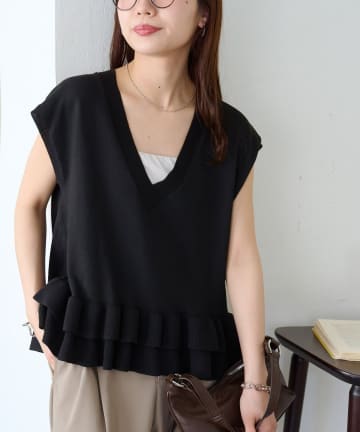 【上品な肌見せ/5色展開】フリルクロスニット《WEB限定》