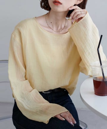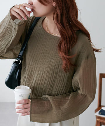 【新色追加!/全16色展開】シアー袖切替プルオーバー≪WEB限定カラーあり≫