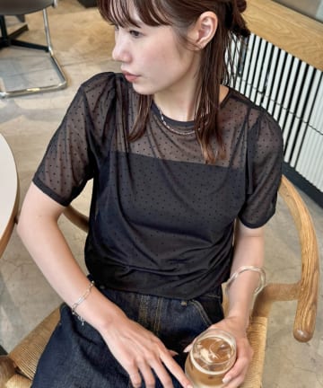 【umm.】ドットチュール半袖プルオーバー