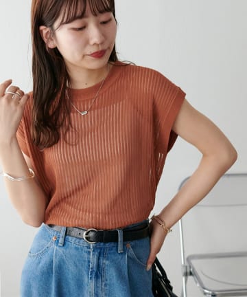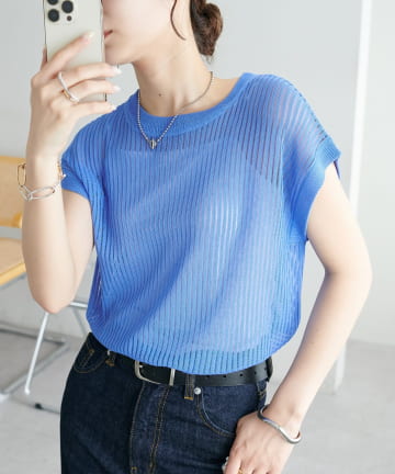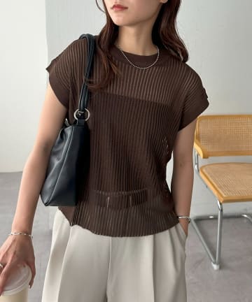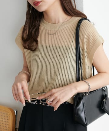 【新色追加!/程よい透け感◎//WEB限定】フレンチスリーブリブニット