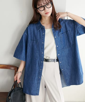 【WEB限定】リングドットデニムハーフスリーブシャツ