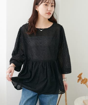 【WEB限定】ペプラムフリンジジャガードブラウス