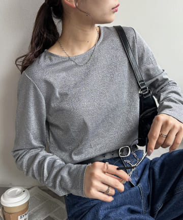 【万能インナー/WEB限定】ラメシアー袖切替プルオーバー