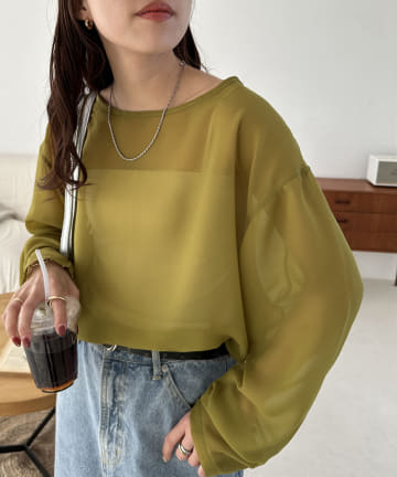 【新色追加!/全16色展開】シアー袖切替プルオーバー≪WEB限定カラーあり≫
