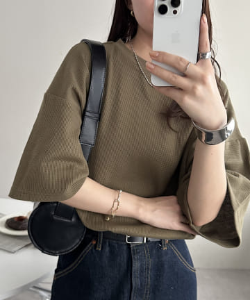 【WEB限定】ピコレース付ワッフルTシャツ