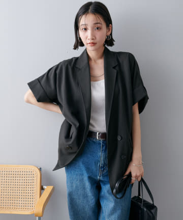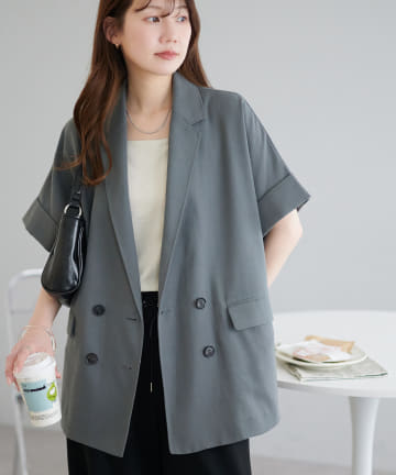 【程よい透け感】半袖シアーテーラードジャケット《WEB限定》