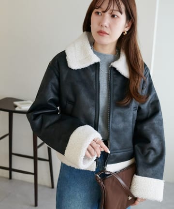【WEB限定】フェイクレザーショートブルゾン