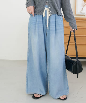 【後ろゴム仕様◎】ライトデニムタックワイドパンツ