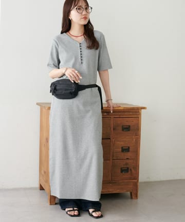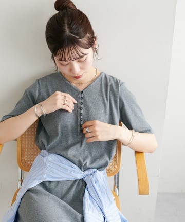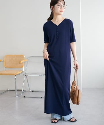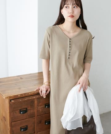リブピコレースヘンリーカット半袖ワンピース
