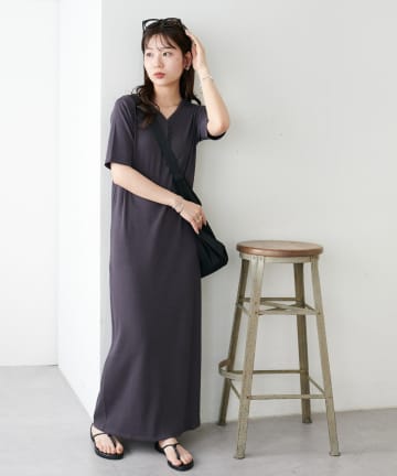 【WEB限定】シャーリングVネックワンピース