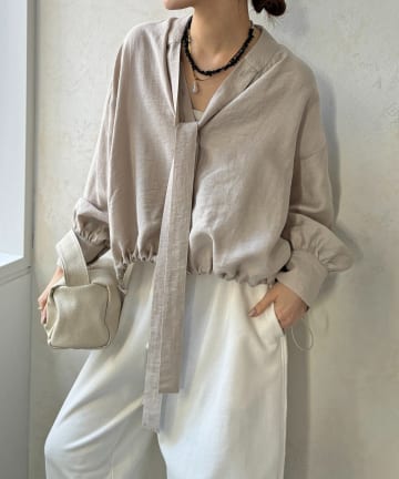 【WEB限定】キュプラ混シャーリングブラウス