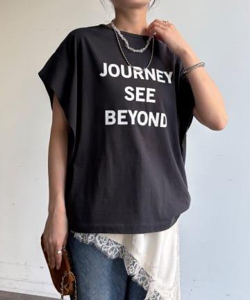 PLEIN D'ESPOIR ジョーゼット半袖ロゴTEE