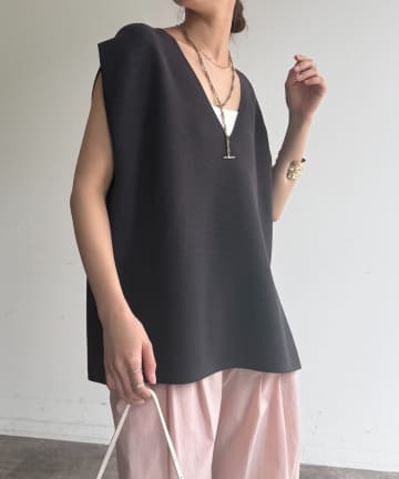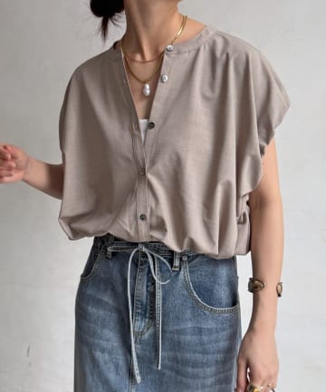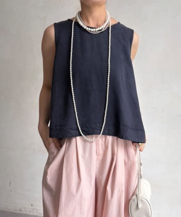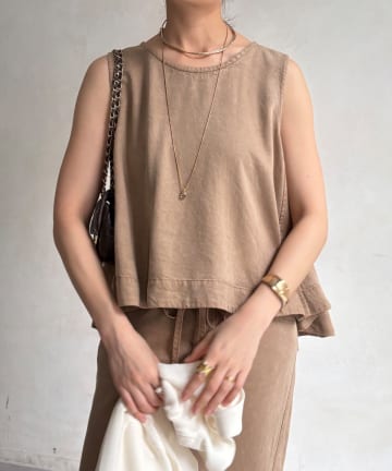 【セットアップ可能】リネン混サイドデザインタンクブラウス
