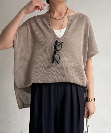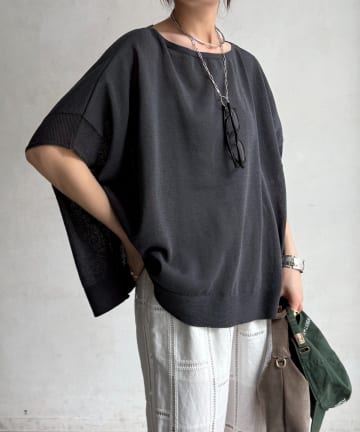 マーブルヤーン前後2WAYカノコ編みプルオーバー