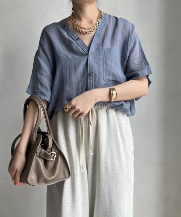 【WEB限定】リヨセル×ジョーゼット切替シャツ