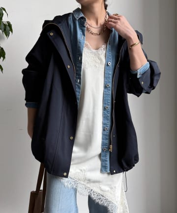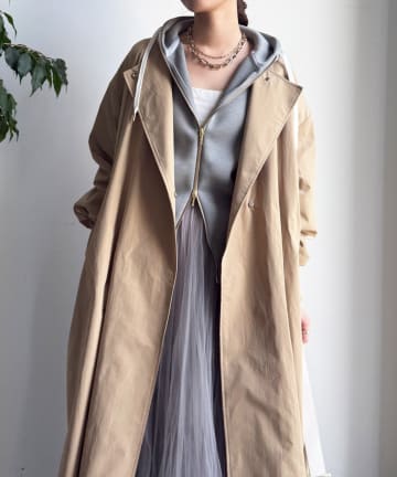 フィブリルタッチフーディージップロングコート