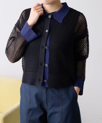 《前後2WAY/レイヤード風/シアー/透け感》ラインシアーカーディガン【SUM1 STYLE(スミスタイル)】