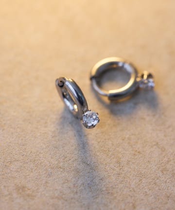 《キャッチレス仕様/金属アレルギー対応/ステンレス》石付きミニフープピアス