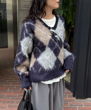 【MICKEY&JERRY】UNISEX シャギージャガードニット