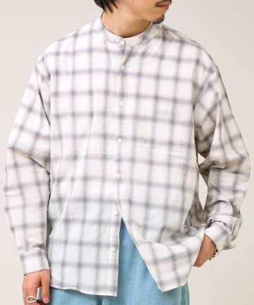【夏まで使える】テクスチャーバンドカラーチェックシャツ