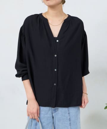 【WEB限定/リバイバル】リネンライクタックブラウス