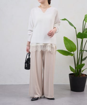 【あったかパンツ/2サイズ展開】ウールライクイージーパンツ