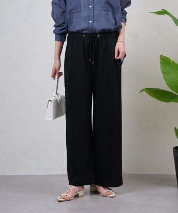 【やわらぐシルエット/きれい見え】テンセルタックワイドパンツ