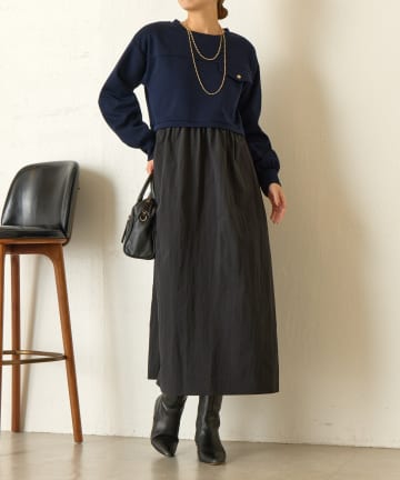 【1枚で決まる】レイヤード風ナイロンワンピース